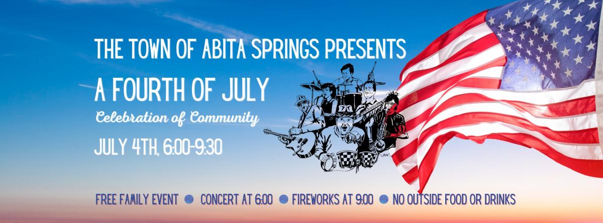 Independence Day Celebration runs from 5 pm10 pm at the Abita Springs Trailhead featuring local bands refreshments flag retirement ceremony and of course fireworks at 9 pm. THE TOWN OF ABITA SPRINGS PRESENTS. Abita Springs 4th of July Celebration Sunday July 4.